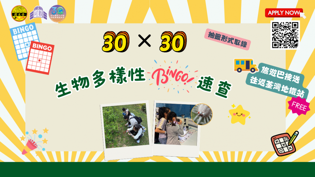 適逢可觀中心成立三十周年,本中心特意舉辦30 X 30生物多樣性Bingo速查,讓參加者在限時內尋找30種生物完成bingo,並收集微小生物利用立體顯微鏡觀察,一嘗成為自然探索家的滋味!