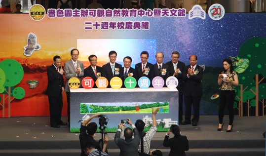 一眾主禮嘉賓主持嗇色園主辦可觀自然教育中心暨天文館二十周年校慶活動啟動禮,一連串精彩吸引的「二十周年校慶活動」正式展開!